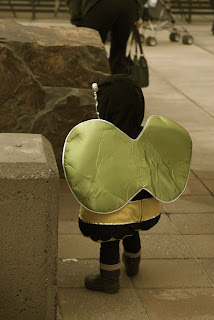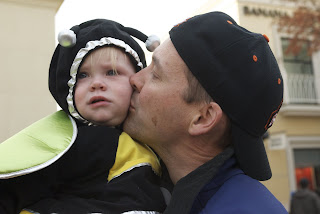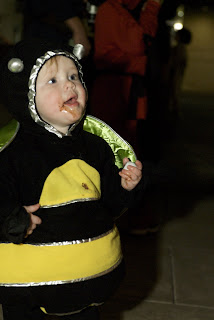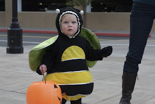 We picked up EG from Grandma and Bah-Pa’s at about 3:40 this afternoon, then headed down to Bridgeport Village to meet up with the Radiches and Simmons for some Trick-Or-Treating with the kiddos. Ellie was enthrawled with all the kids and all the people, and was just so busy (yeah, I know. She was a bee after all).