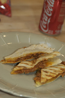 I used the pulled chicken that was left over from the Hannibal Lecter heads to make quesadillas, and WOWZA, that’s a make-again!