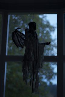 The horses seemed happy and fine, though Frank’s swelling just won’t go away and Avdou needs to get out BADLY. Thankfully, I made it out there just before the rain started in full force. I pulled down our “glowing ghosts” that now look more like melted ghosts, and headed back inside. After sorting through a few things, I found a gift that my friend Amy had brought to the party, and I’d set aside and forgotten about – more decorations for the most fun holiday of the year! Thanks, Amy, for the gift – I love them!