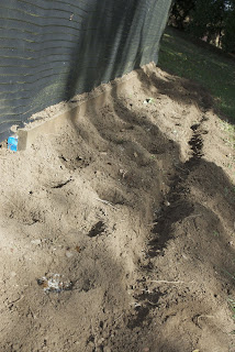 I follow behind and plant bulbs – come the spring, this strip of dirt will be blooming with daffodils and muscari!