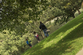 Oliver, Colin, and Margo heading down to the boat for some fishing