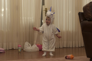 We stopped by Babies ‘R Us on the way home from the swim safety demonstration to pick up some socks and rain boots for Ellie. And, of course, Jeffrey couldn’t resist taking a peek at the adorable Halloween costumes! I won’t spoil the surprise, but we found a great one, and after trying it on Ellie, she didn’t want to take it off…so we traipsed around the store with a little girl in full costume! She was waving and saying “HIIIIIIIII” to everyone! So freaking adorable. When we got home, we put on her little unicorn costume that we’ve had hanging and she loved that too! It’s a bit small, but she wore it for about an hour. Sooo cute.