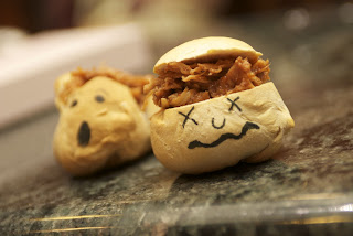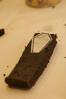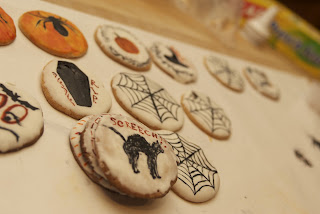 SOOOOOOO…just because I didn’t have enough going on today, I continued preparing for Friday’s Halloween party. I added to the decorations in the living room, made ID tags for appetizers, made the ID tag holders (which are mighty creative, if I do say so myself), made the bread bowls for Jeffrey’s Hannibal Lecter heads, prepped the blackberry/thyme juice for the margaritas, and racked my brain to figure out what else to make for hor d’oeuvres!