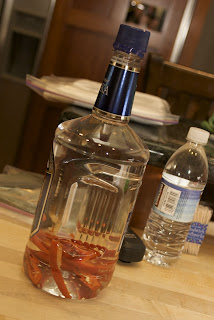 Infusing the vodka with Jalepeno Peppers for the SexyWoman Punch