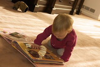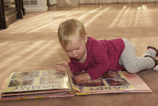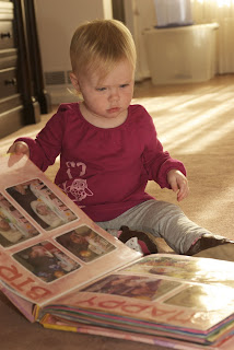 It’s always so nice to have a relaxing morning, playing with Ellie Graye in the living room as a family. My mother-in-law Phyllis spent several weeks (maybe months?) making Ellie Graye a scrapbook of her family. It’s one of the most incredible gifts I’ve ever received! Each family member has a page, and Ellie just LOVES sitting and looking at all the photos…we spent a good 35 minutes today just talking about everyone. It’s such a great way for her to stay familiar with faces that she may not be able to see all the time! (THANK YOU, PHYLLIS!).