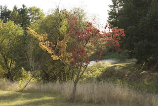 Looking back toward the house and the vegetable garden – Fall colors emerging!