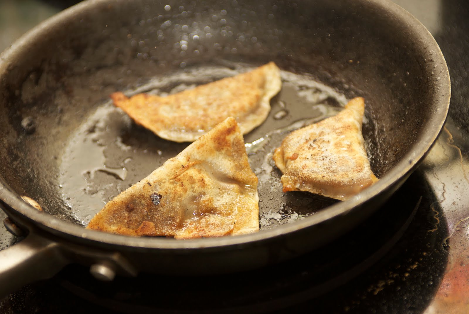a tiny amount of oil to crisp up the wonton skins