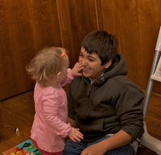 Yovani came with Victor and Lorena since school is out this week; EG couldn’t have been happier. She LOVES him! Having him around to keep an eye on the baby freed Lorena up to help me get everything in order for tomorrow.