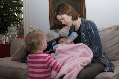 Watching the baby drink her “meh-meh” (EG’s word for milk)