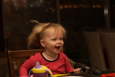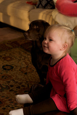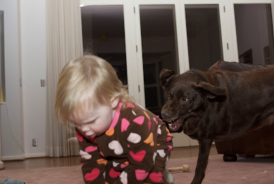 This just cracks me up. A total fluke. Boots is behind EG – the dogs were rough housing while EG played! Hee hee