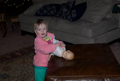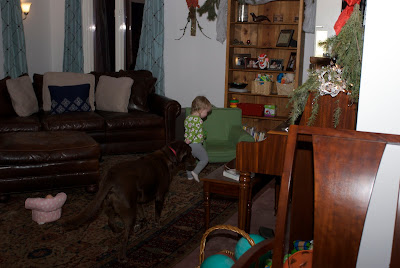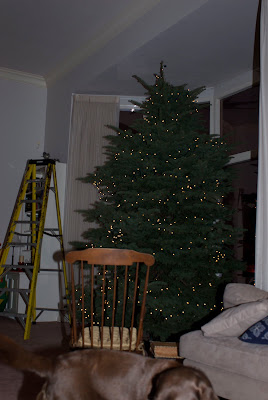 17. Three hours later with the tree covered in lights, discover that it’s almost 9:30, and the baby is still playing and running around – way past her bedtime…have a slight panic attack that she still hasn’t eaten anything. Give her banana which she gives to the dogs. Put her in her crib WITH her sippy cup of milk (again, WTF is wrong with me?!?!).