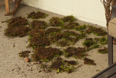 One of the other items on my list that I was able to accomplish today had to do with the property as well: moss gathering. Since it wasn’t raining, I used the opportunity to head out on a good walk to harvest moss for all my creations. It’s a good way to clear my head, as well. The fresh, clean air helps me breathe and refocus on what’s important (I have to admit, that’s something I’m struggling with right now). I found a great little nook with lots of well woven moss sheets that came up cleanly and easily. Next step is to leave it upside down outside so all the bugs crawl out, then bring them in to dry before it’s ready to use.