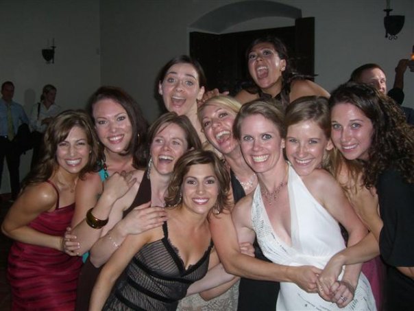 The girls (Carrie, Erin, my sister Hannah, Mandy, Lesley, Renee, my childhood friend Leah, me, my college friend Katie, and Jessica P.) at our 2006 wedding in Pasadena, California