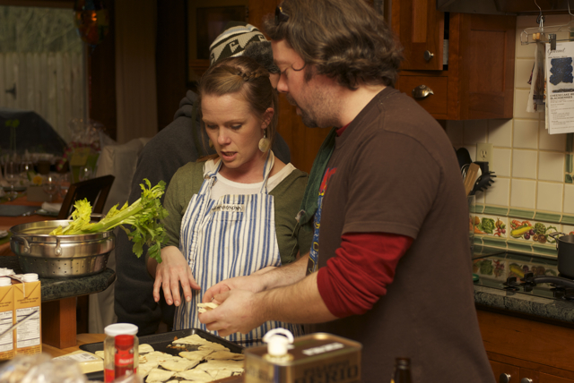 I returned to the house in time to prep the appetizers and start helping Jake in the kitchen. I cannot tell you how much fun Jake and I have cooking together. We laugh, we argue, we critique the other’s technique, all while entertaining the inevitable group of people standing on the other side of our island. It’s as if the kitchen was custom designed just for how we work and entertain. The Gaylords (the previous owners) couldn’t have planned it better for us!