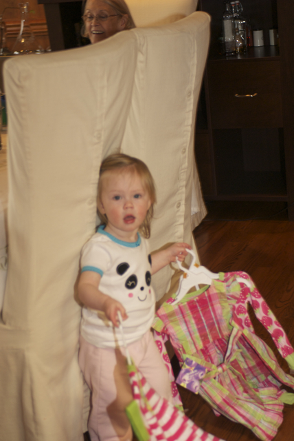 Yovani tried to get it on her. Victor tried. Nana tried. Uncle Colin, Grandma, and Daddy tried – without success! During the attempt to sway her little 21-month-old mind, she made more than one trip running through the kitchen with just her panties (over her diaper) and t-shirt on. Wherever she went she was screaming the shrill, “NOOOOOOOOOOOOOOO!” of a child who just isn’t going to give in! I let her have that one! Hmmm. I wonder if I have a tom-boy on my hands! You’ll hear no complaints from me on that one! I do much better with that than with frilly stuff!