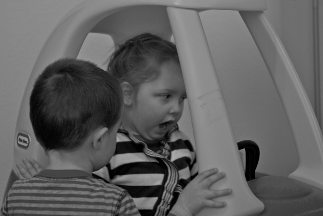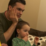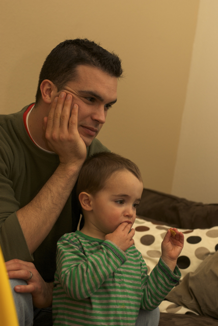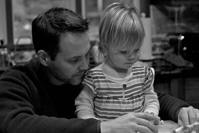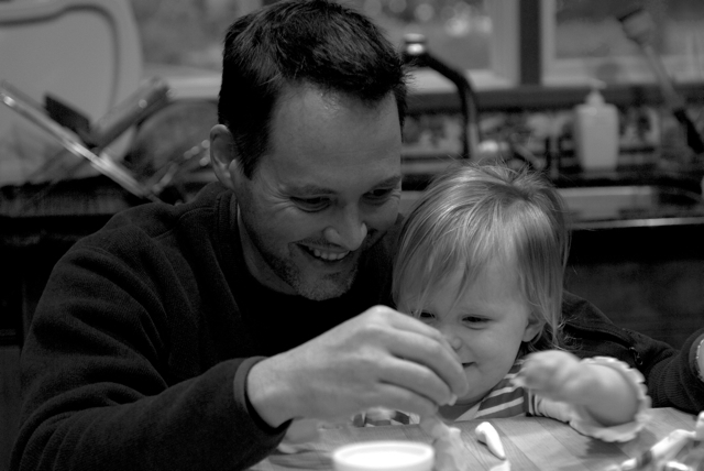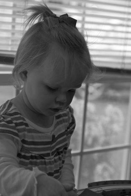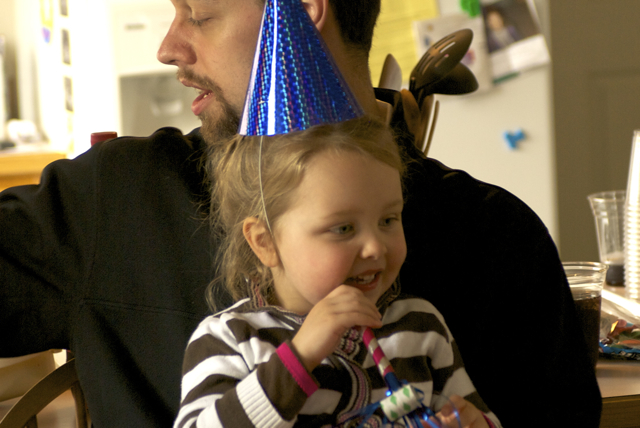 Ellie, of course, fell asleep on the way home. She was so darn tired, so I carried her to her crib and then headed back out to the barn to bring in the horses and muck stalls…that didn’t take long, and when I returned, I discovered that EG hadn’t actually fallen back to sleep, but was screaming in her crib while Jeffrey took a nap. I let her scream a little longer and got a couple more things taken care of. In the meantime, Jeffrey woke up (EG has a pair of lungs that could rival any opera singers) and he and Ellie were soon busy playing with the play-doh that had come in the favor bag from Eamon. Apparently, Daddy helped her overcome her hesitancy to play with something so disgusting. Ugh. I hate Play-Doh…ANYWAY, it was awful cute to see the two of them having fun together…Jeffrey loves that little girl so damn much!