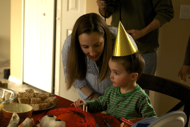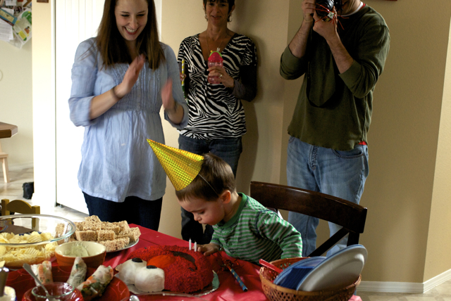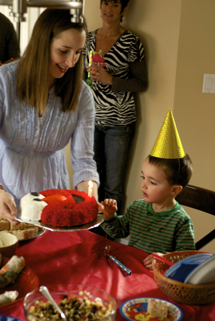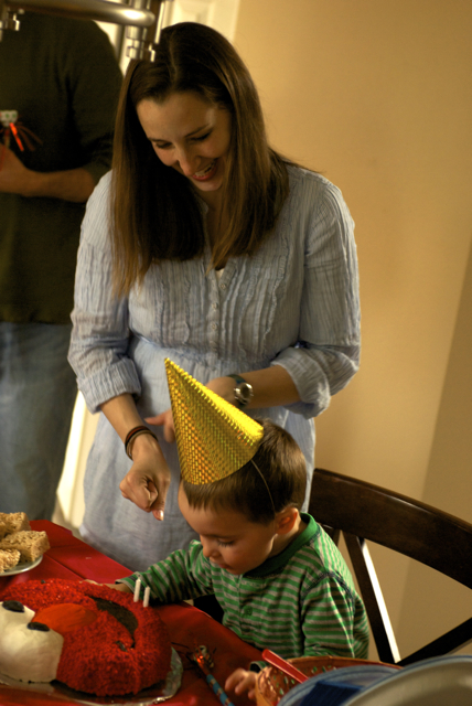 At about 10:40 am, Jeffrey, EG, and I all piled into the car, and headed to little Eamen’s 2nd birthday party. We had been to their house once before, and Jeffrey felt decently confident that he knew where he was going. Once we put the address into the GPS, however, we discovered that we had driven right past the exit, and the next exit wasn’t for another 7 miles or something. There were some curt words exchanged, and then silence. I had to throw in my snooty, bitchy, snide, “We’re going to be late” comment, and then silence again.