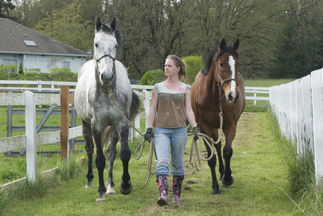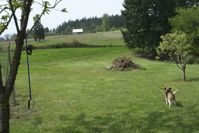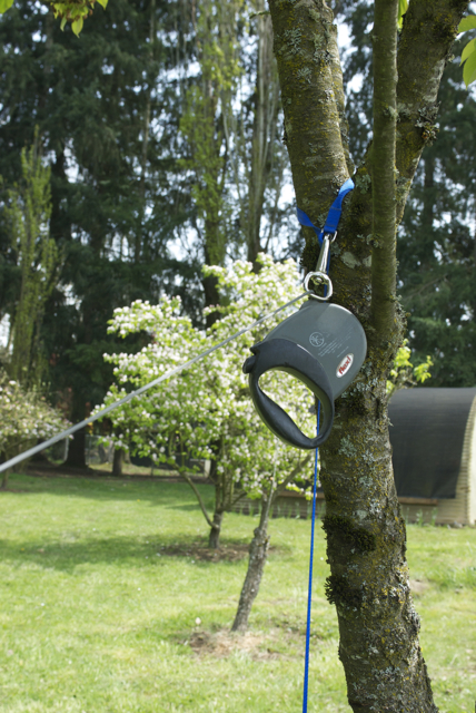 My handy-dandy, no-tangle tying system that I learned while on a horse trek through the island of Crete. We tied the horses to trees overnight using a similar system