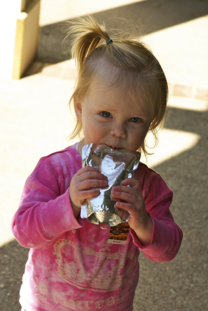 Ellie had her first juice today…straight out of a juice pouch. She loved the first couple sips, and then it was all just a bit too sweet for her. So cute! 🙂