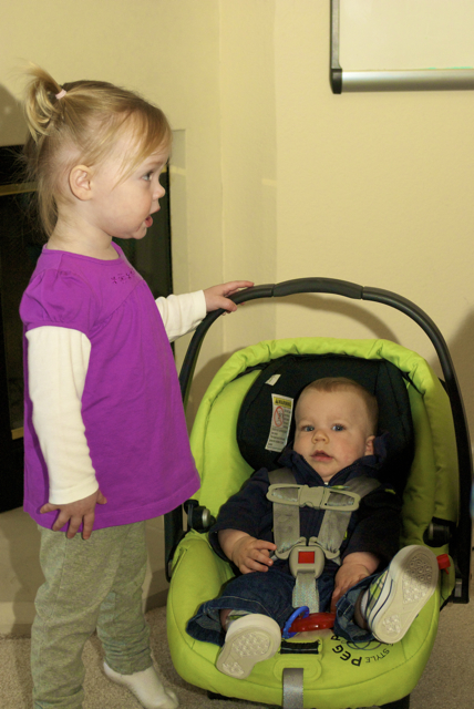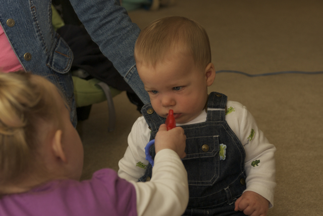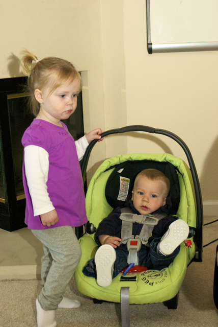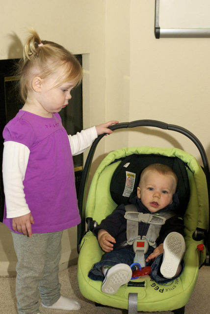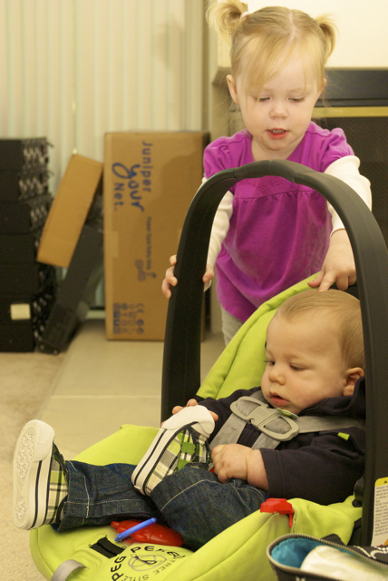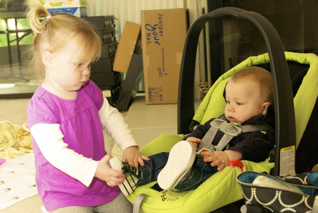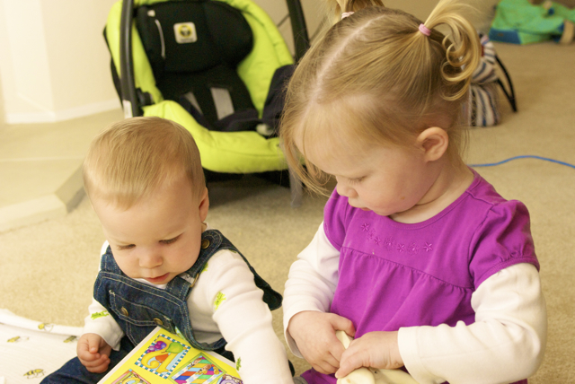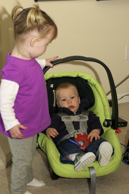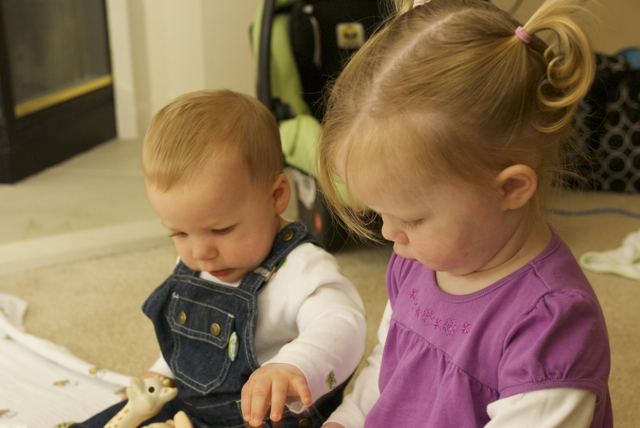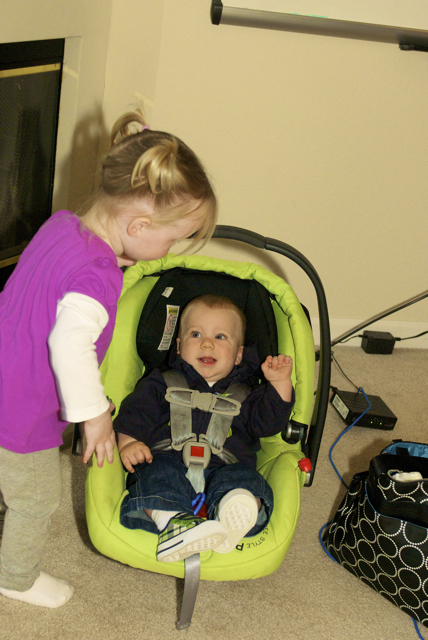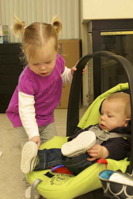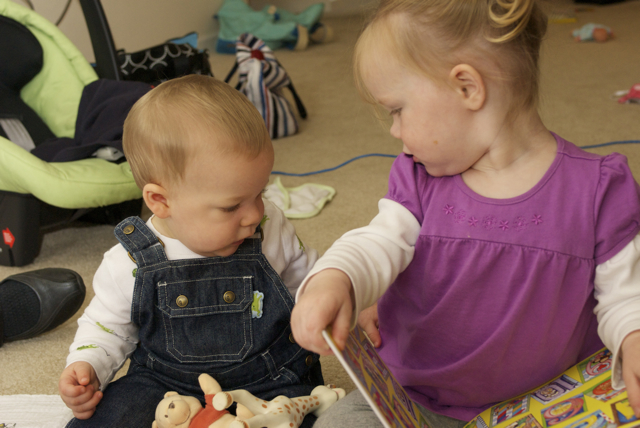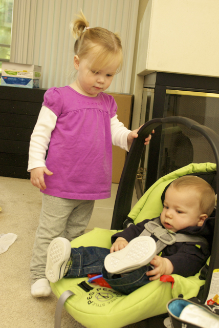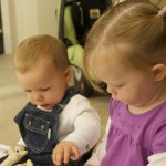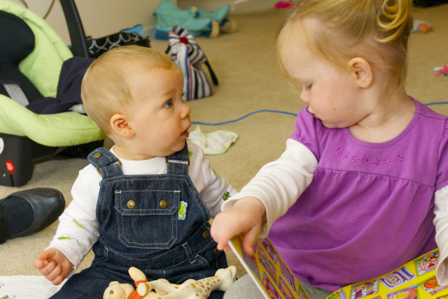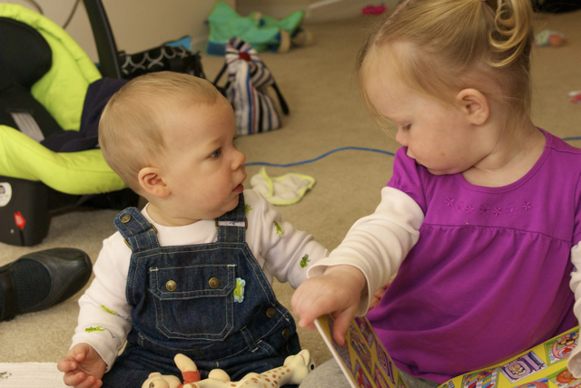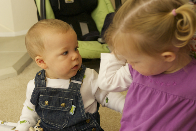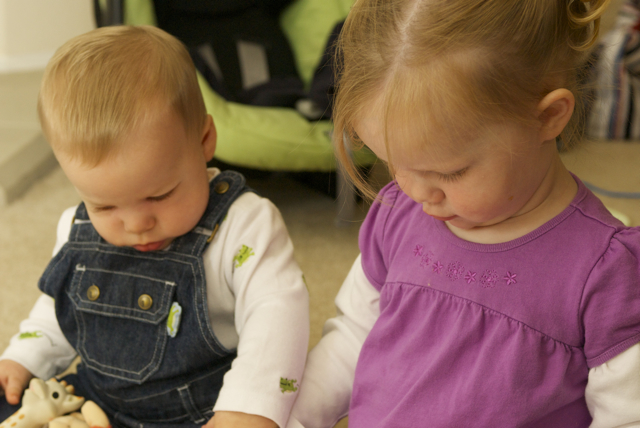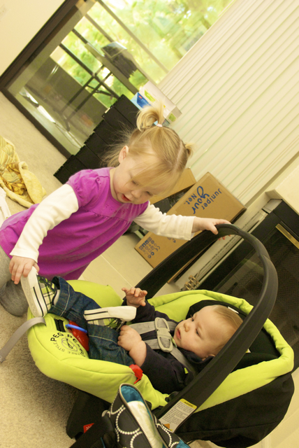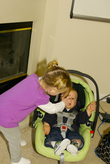 I told you it was a family trip.  This morning, EG met Jeffrey’s cousin Eric’s son Aiden.  This child loves babies.  If I can ever wrap my brain around having another child, she’ll make a wonderful big sister.