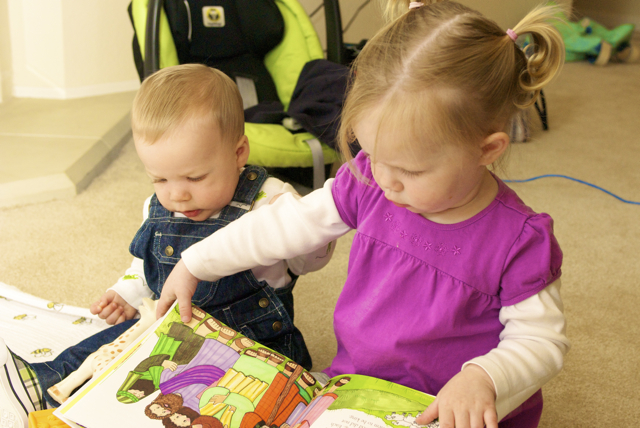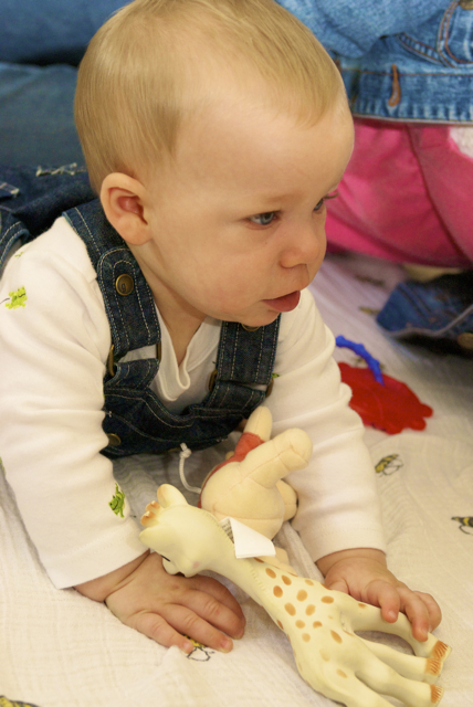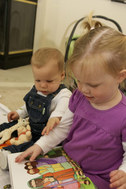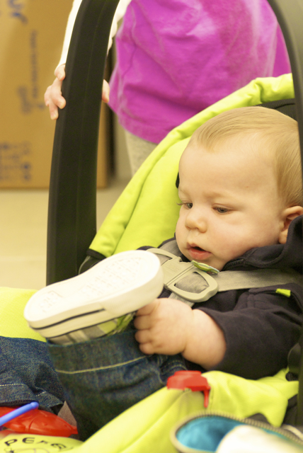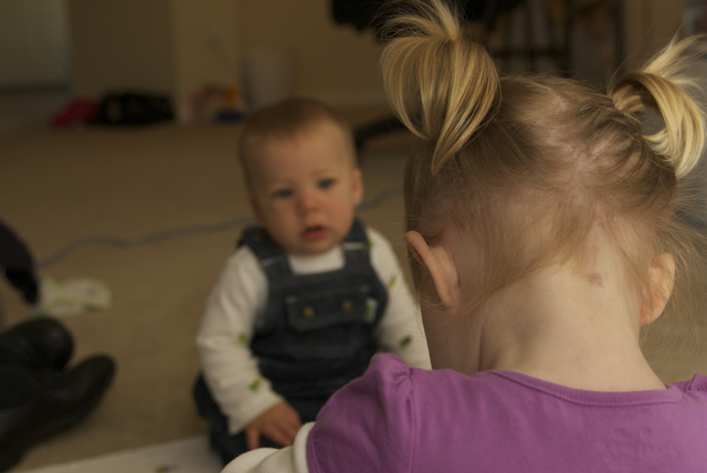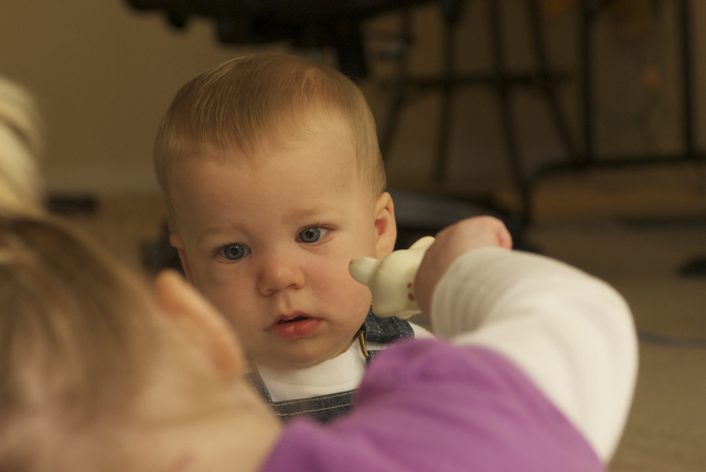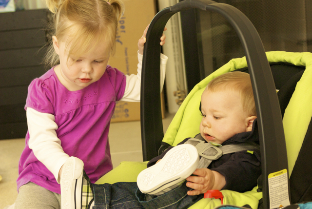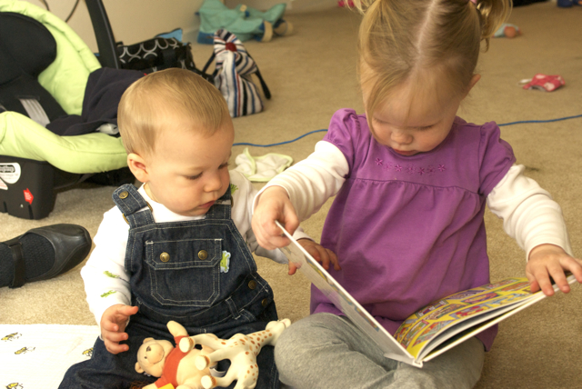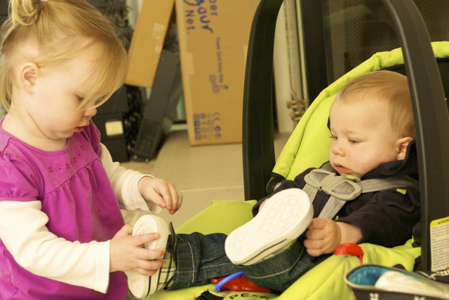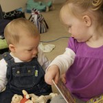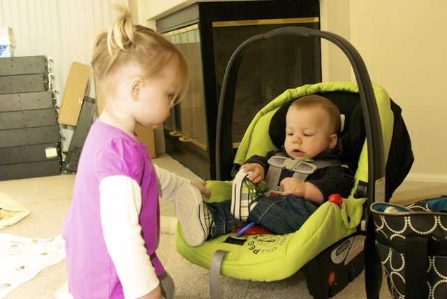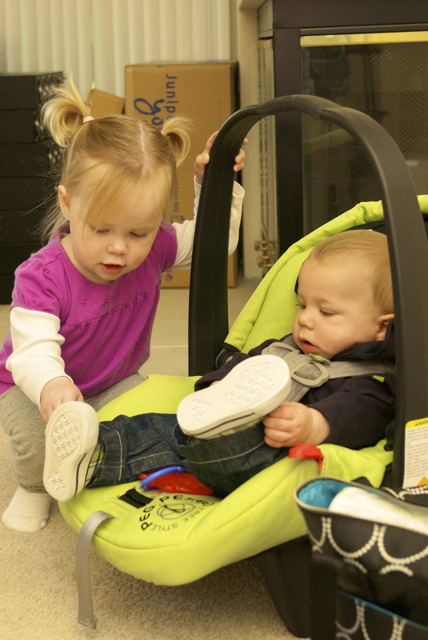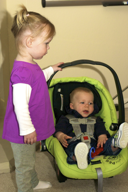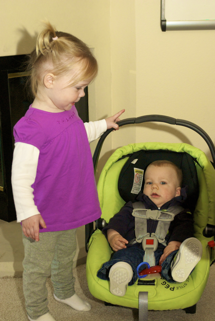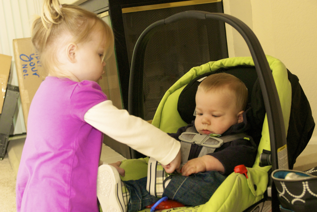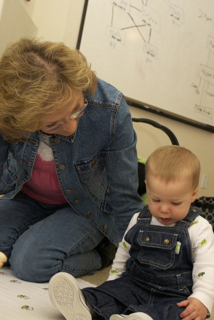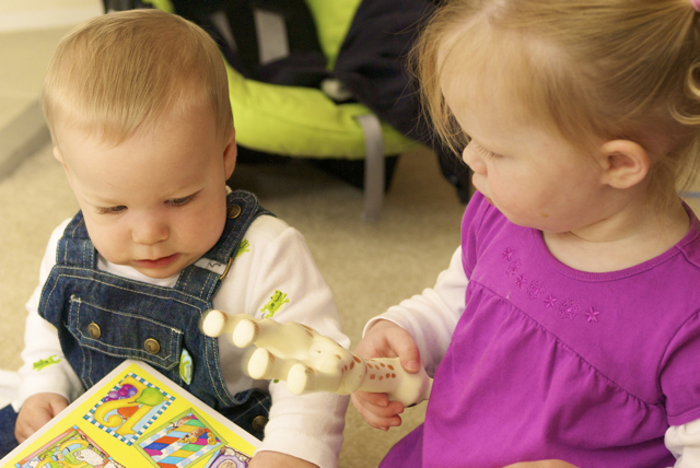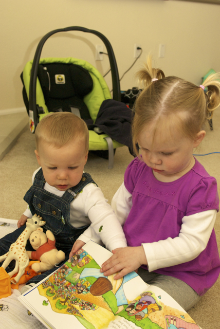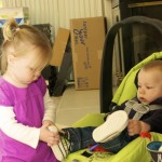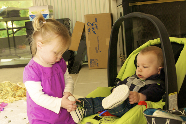 I told you it was a family trip.  This morning, EG met Jeffrey’s cousin Eric’s son Aiden.  This child loves babies.  If I can ever wrap my brain around having another child, she’ll make a wonderful big sister.