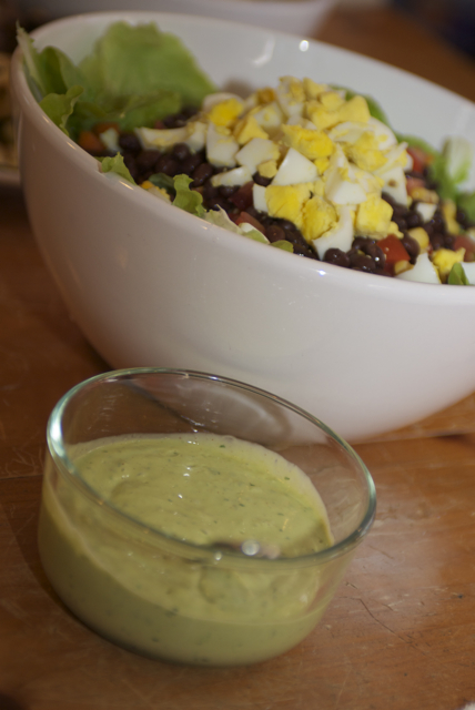 We returned home to find Jake busy in the kitchen – preparing an amazing tri-tip, potato salad, and getting ready to grill up the chicken I had started marinating last night. I threw together a salad from the garden and whipped up an avocado-cilantro dressing and voila, Father’s Day dinner was an insanely delicious success!