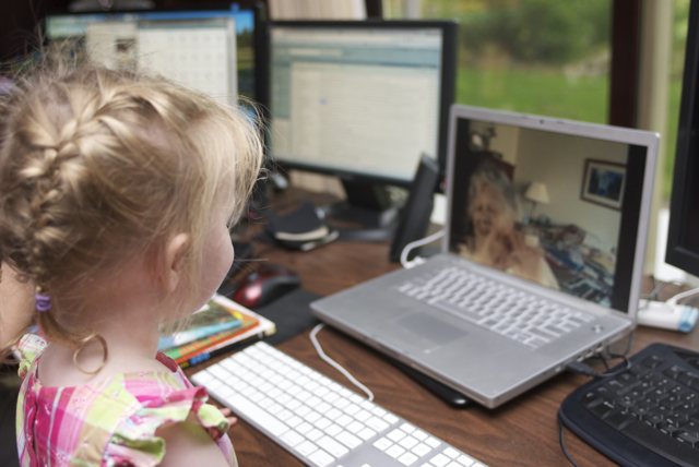 - Talking to her Great-Grandmother “Grandody” on Skype! Check out the French Braids!!!! 😀