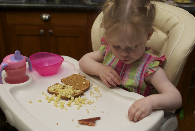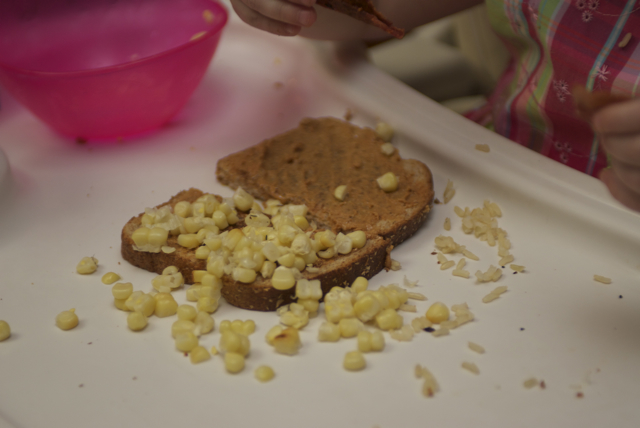 With Ellie, the chores around the farm, making sure we’re all fed, and trying to make it onto Oprah’s Network, I haven’t had much time for anything else!!!! Ellie continues to be her cute self, and created her first original dish: Corn and Peanut Butter Sandwich. Yum.