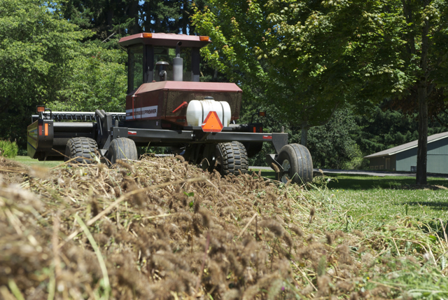 The beautiful crimson clover which has turned into ugly dry brown fields has finally been cut and is now drying in the fields. They’ll come back in the near future to collect all the seeds, and harvest them for reselling. I have a fascination with their big machinery, and asked Scott if he’d let me drive the tractor when they come harvest! I can’t wait to poke around on that thing! I was happy I got the photos that I did of the tractor in action since apparently they have to cut the clover before the temperature gets too high. If it’s too hot outside, the seed pods burst and they lose their harvest. Fascinating, huh?