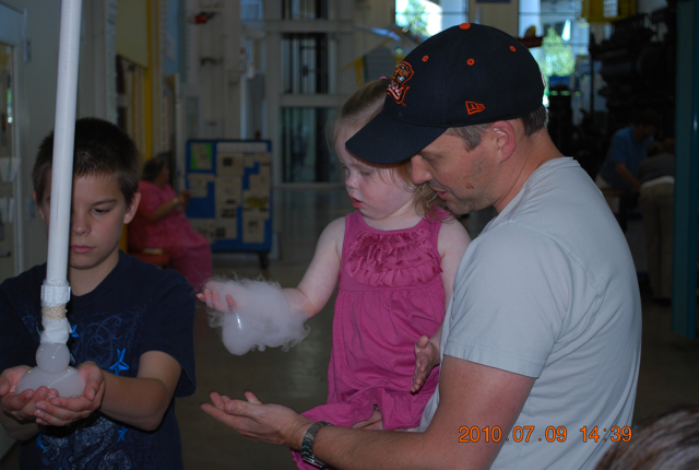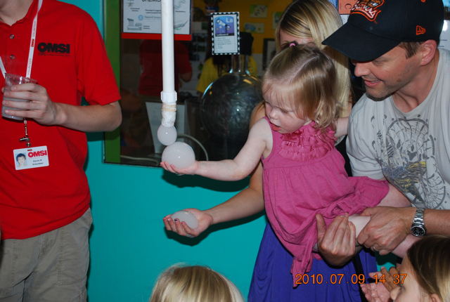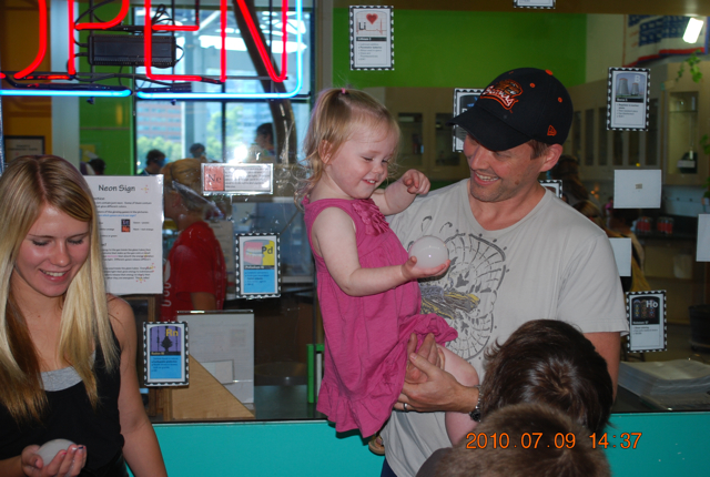 The day definitely greeted us with an exuberance that couldn’t be squelched even with a cranky toddler running through the house naked, welcoming our house guests who walked through the door just as my darling Ellie somehow managed to throw a fit, say hi, and run all at the same time. Jeffrey took a semi-day off, and took his family to OMSI (Oregon Museum of Science and Industry). Ellie is loving having her cousins here and had a great time playing with all the exhibits. Thanks for the photos, Jenny and Mike!