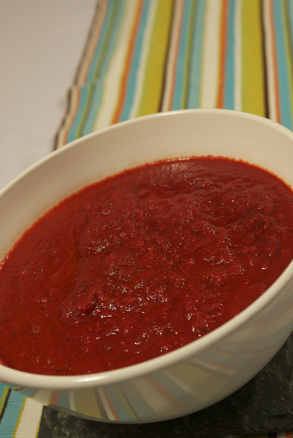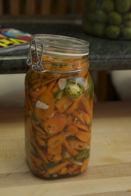 While the sauce was simmering, I sliced up the carrots and made one of my favorite summer snacks: Spicy Pickled Carrots. So darn good, fresh, and clean!