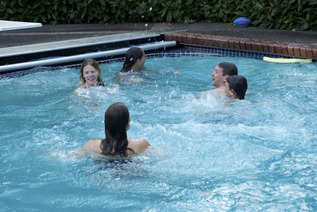 With the air conditioner still out of service and the heat nearly unbearable, once everyone got back to the house and EG had had her nap, it was pool time. I can’t tell you how proud it makes me to watch Ellie swim the entire length of the pool alone. Not just that, my little almost-2-year-old jumped off the diving board, caught her breath, and then swam to the side – without anyone touching her. I almost burst with pride, and also gratitude to the swim school for giving her such an amazing, life saving skill! It’s pretty darn amazing. Jake got a lot of footage, and is working on putting together a video, so hopefully within the next couple of days, we’ll be able to post it for you to watch!