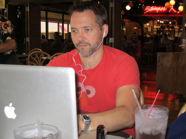Jeffrey's idea of vacation: working in a different location! Ha. Business call during our layover in Honolulu