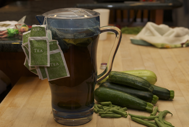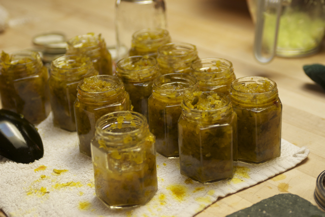 We woke up late, but made zucchini bread/muffins, sweet pickle relish, chicken tagine…………