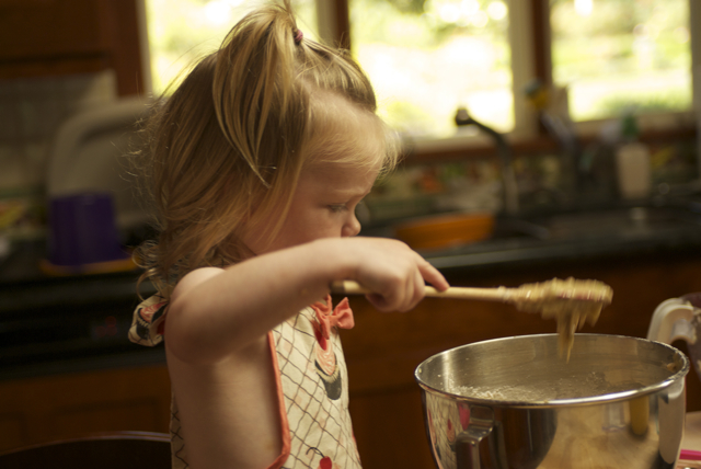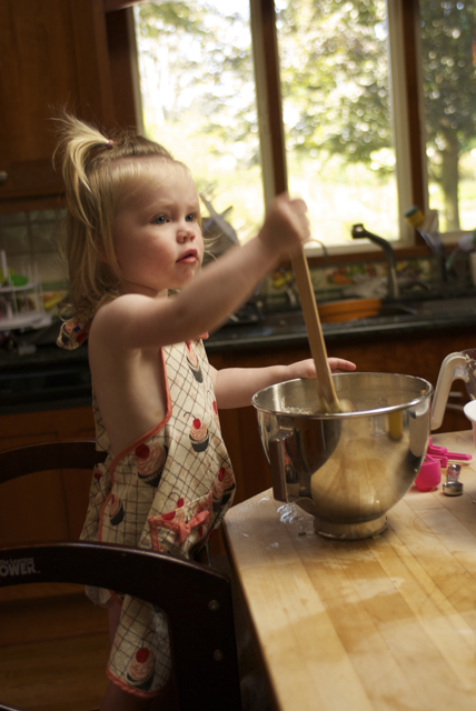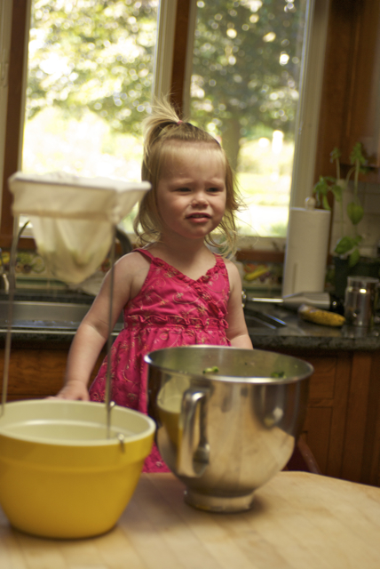 Since we got cucumber on the previous dress, we decided to wear ONLY an apron for the zucchini bread