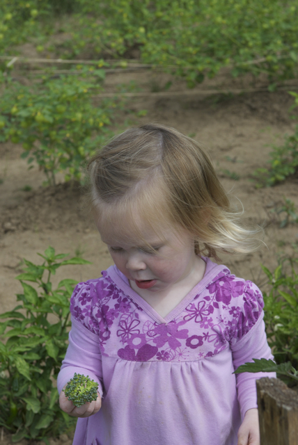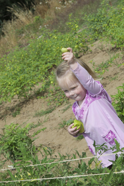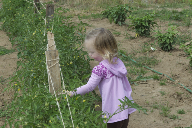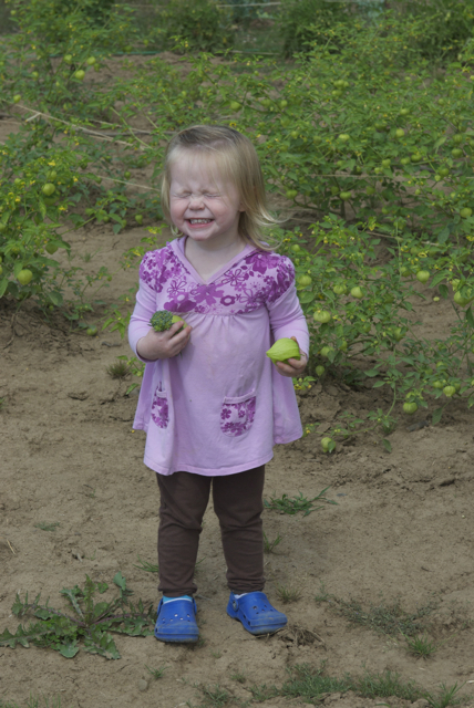 Our first day back, I was thrilled to spend time with my little Bear, and she was completely enthralled with picking tomatoes and “totatillos.”