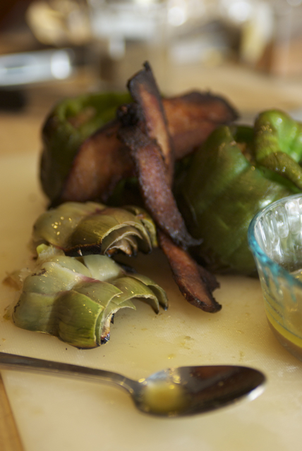 With Monday being a traditional barbeque holiday, Jake and I somehow threw something together. Colin and Susie decided to come over at the last minute which worked out great since we had loads of Grilled chicken and tri-tip. Jake smoked a second tri-tip, and lord almighty it was sooooooo yummy. We grilled up one of our garden grown artichokes and a couple of stuffed bell peppers (also from the garden), had a Greek salad (again from the garden), and had a great night hanging out.