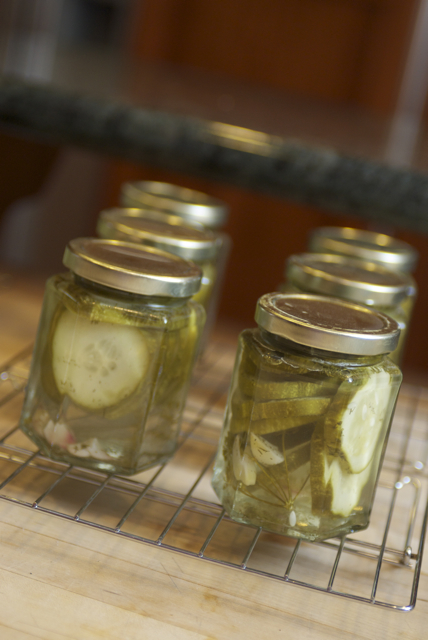 We certainly had a great time, but since I had started soaking the cucumbers to make pickles, it had to be done, so I was up until the wee hours of the morning making pickles. Jake got some footage, so maybe if we ever get our act together well edit a short webisode to post here. Today I made more pickles, started some vodka infusions, and began the blackberry jam process. Tomorrow I have a million things going on (EG’s new swim lesson, my mother-in-law arriving, zucchini bread, jam making, packing)…Thursday I leave for Nashville. Holy Moly. Where the heck is the time going?!?!?