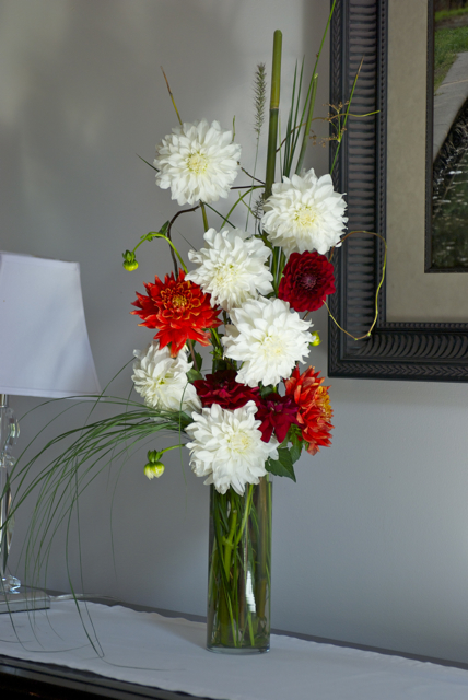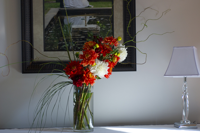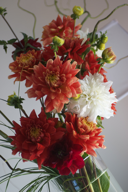 I brought home a few bunches of dahlias to play with them and come up with a plan of attack. I’m pretty happy with the arrangements – let’s just hope I can repeat them! 🙂