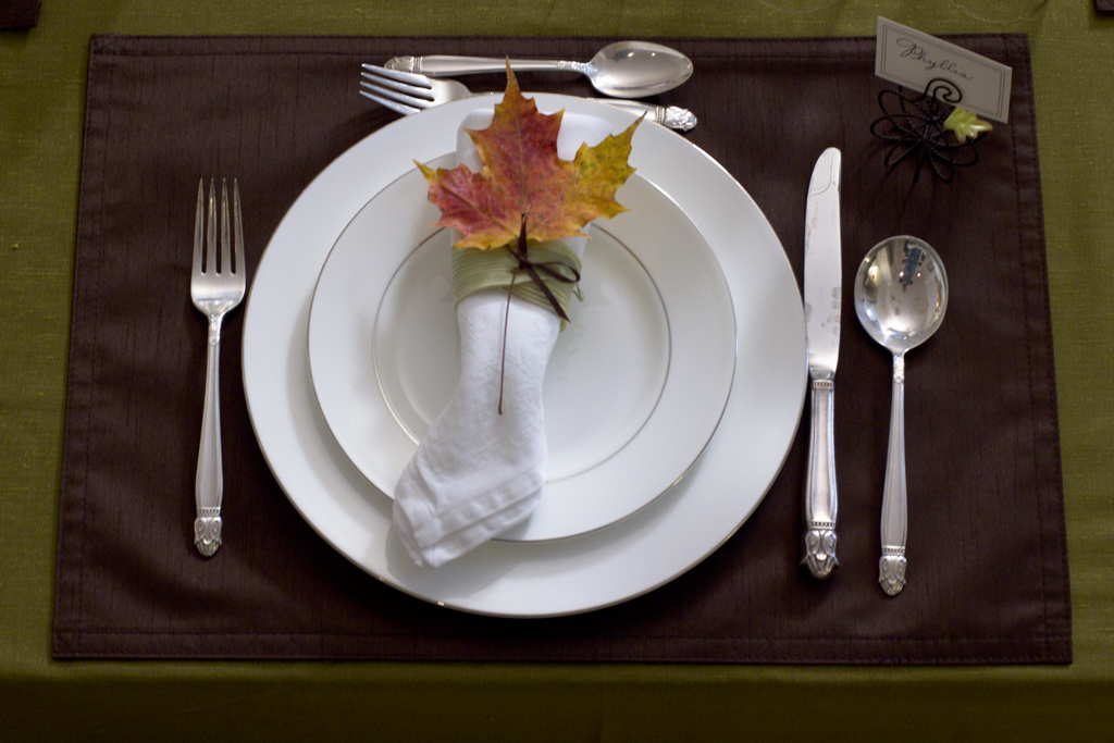 Corn Husk Napkin Rings. I always try to add a little something handmade to my table decor, and this year I made my own napkin rings. After cooking corn cobs in their husks, I used the cardboard from a paper towel roll, wrapping the husks loosely around them. After punching two holes in the husks, I secured them with a small piece of ribbon. I then let them sit in a warm, dry part of the house for several days until they held their form. To add some color, I slipped a fall leaf into each ring – the color was just what it needed. They were so easy and adorable, I just might make them every year!