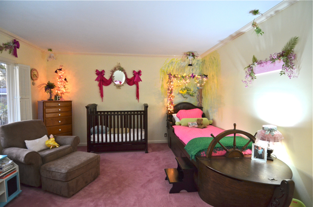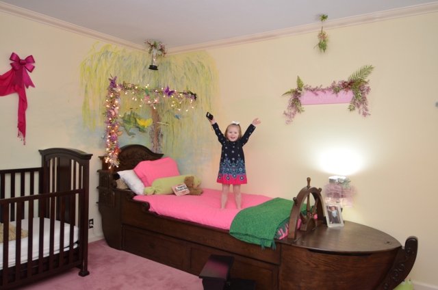 It all finally came together today. I found the perfect quilt set at Target on clearance for $7.48!!!! Ellie was SOOOO excited about it, and had to show everyone who came in the house. I hung the last fairy on her wall, and even though I’m waiting for the perfect touch for a couple of places, I feel good about the room as a whole! I would never have thought I’d take such a girly route for decor, but it just fits Ellie Graye’s personality! We’re both loving it!