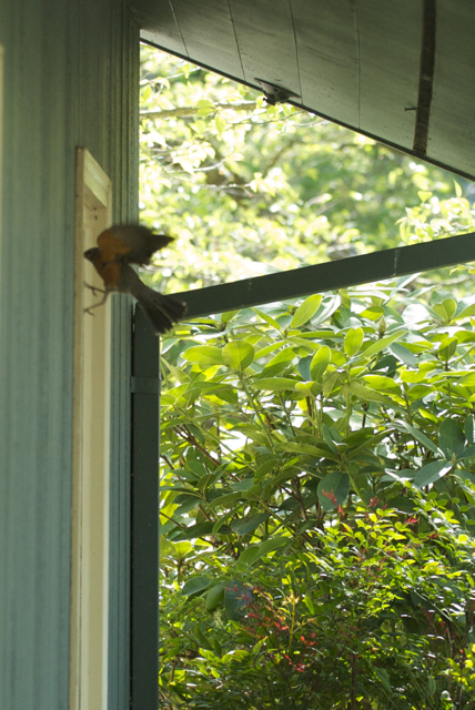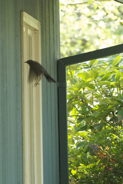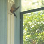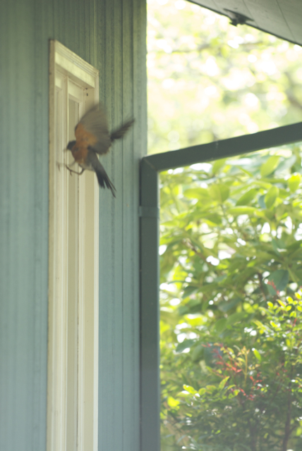 The next year, my cousin Sarah visited. One morning as I walked into the kitchen, she exclaimed, “Oh my god, Melissa, what is going on in the laundry room? Something keeps hitting the window! I’m too scared to look, so I just shut the door!” Yep. You guessed it: a damn robin. Not long after, Jake informed us that there was yet another drunken bird flying into the window of the pool house. Something about our windows makes these guys lose their mind!