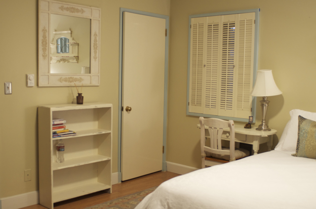 The book shelves were dark brown and peeling...now they're aged white 🙂 I just need to fill them with books!