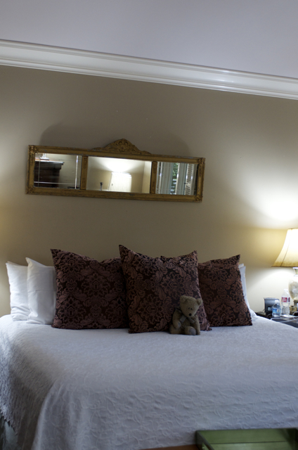 When my brother Jake moved up here to Oregon from Los Angeles, I inherited the two mahogany dressers that were once my great-great-great grandmother’s. They’re beautiful, but they’re massive and old, and were not kept in the best condition. I hope to one day bring them back up to par, but for now, they’re a little run down. Because they’re such massive pieces, they definitely set the tone for the room. I also have a smaller mahogany dresser as well as a table that Jeffrey uses on the rare occasion that he works in the house…