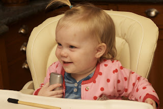 Whenever the phone rings, whether we’re in the car or at home, Ellie’s eyes light up and she says, “Papa!!!” or “DaDa!” She loves talking to him on the phone. She’ll smile and say, “Hiiiiiiiiiiii” and then hug the phone or blow kisses. I finally had the camera close by to capture some of the cuteness. She’s definitely daddy’s little girl!