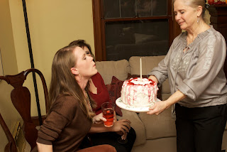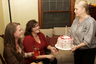 Everyone (especially mom) put so much effort into planning a great evening. There were favors (recipes that she had printed from my blog), delicious things to nibble on (she made a tuna appetizer that Colin was sure wasn’t tuna – because he HATES tuna), a beautiful cake, and lots of great friends! She had everyone write a little something about an adventure they had had with me which gave me some wonderful mementos from the night – and some funny stories! It was wonderful to be able to enjoy the night, and not have to lift a finger! I think they were right about one thing: if it hadn’t been a surprise party, I would have insisted on being involved with the preparations! We had a great time and laughed so much our bellies hurt. Thank you, everyone for making this birthday the most memorable one of my adult life!