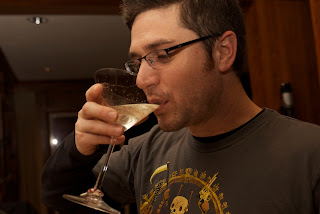 In honor of my birthday, Colin decided that he was going to be the bartender for the night. I should have known better: at our Halloween party, he made our friend Sharon one hell of a shot. I was standing at the beverage table, serving something to a newly arriving guest, when he came up behind me,