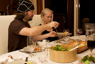 I made some simple appetizers, lasagna and a blackberry jam spice cake, and mom brought a salad, roasted garlic and some delicious fresh bread from the Lamb’s Bakery.
