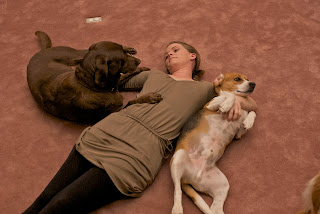 Mom and her beautiful dog Cassie – with Jax begging for some attention!